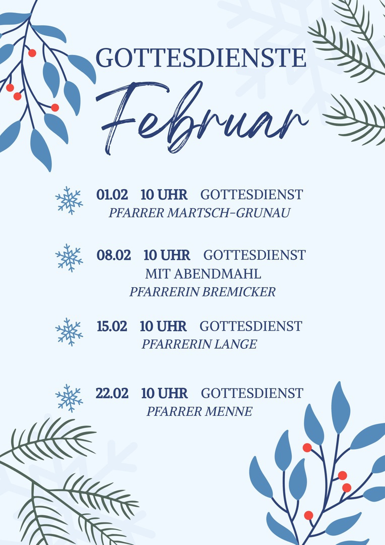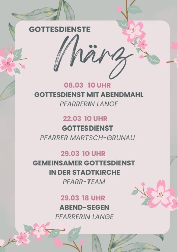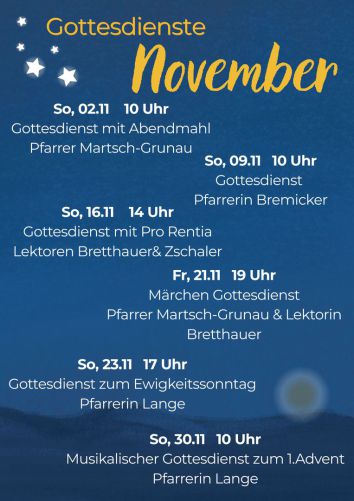 Alle Gottesdienste beginnen, wenn nicht anders angegeben, um 10.00 Uhr